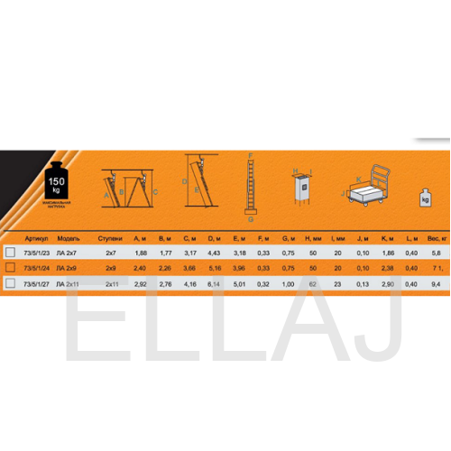 Корпус с антикоррозийным покрытием, изготовлен из алюминия. Благодаря пластиковым наконечникам на опорах лестница не скользит по поверхности. Модель компактная, удобно хранить благодаря механизму трансформации.