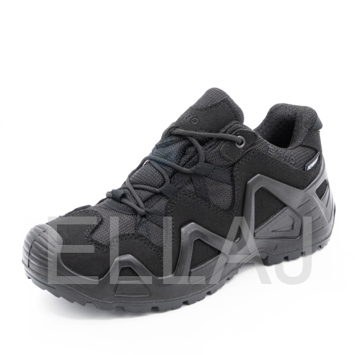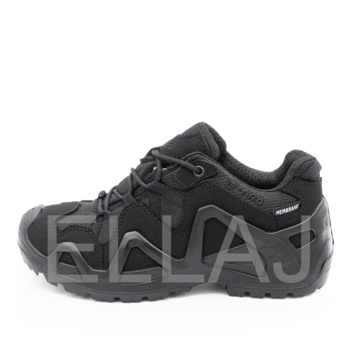 Серия обуви E-PRO — это одна из самых популярных в туристической и тактической обуви, используемая походниками, альпинистами, спортсменами, военными и сотрудниками правоохранительных органов. Линейка E-PRO Special представлена целым семейством моделей, отличающихся по цвету, высотой берца, а также наличием мембраны. Основной материал изготовления — высококачественная замша со вставками из кордуры. Наличие подкладки из мембраны делает обувь непромокаемой и одновременно дышащей, способной отводить испарения с поверхности стопы. Подлитой носок обеспечивает защиту от повреждений. Защитный рант с выборками для облегчения веса проходит по всему периметру и создает узнаваемый образ. Кроме основных функций, рант дает дополнительное сцепление с поверхностью, например, при движении вдоль склона. Высота среднего ботинка 14.5 см, этого хватает для отличной фиксации голеностопа. Все детали прошиты двойным швом, все швы сделаны крайне аккуратно. На пятке есть петелька, облегчающая надевание. Подошва имеет многослойную структуру. Промежуточный слой из полиуретана придает высокие амортизирующие свойства; ходовой слой из резины на основе натурального каучука делает подошву более износостойкой и способствует хорошему сцеплению с грунтом и другими плоскостями.