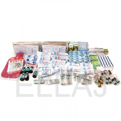 В состав аптечки входят лекарства, перевязочные средства, а также медицинские инструменты и вспомогательные материалы.