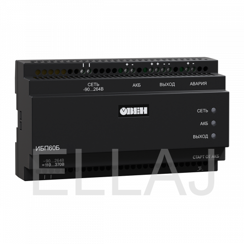 ИБП60Б представляет собой источник вторичного электропитания с резервированием и обеспечивает подключенные к его выходу устройства бесперебойным электропитанием от сети (при ее наличии) и от внешней батареи (при отсутствии сети).