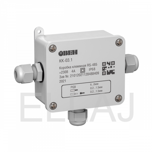 КК-03 предназначена для разветвления кабелей интерфейса RS-485, а также сетей 230 В с номинальными токами не более 4 А на предприятиях различных отраслей промышленности и сельского хозяйства.