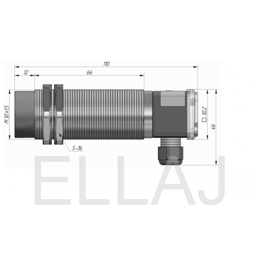 Индуктивный датчик ВБИ-М30-91К-2351-Л в цилиндрическом корпусе из никелированной латуни Ø30 мм, в общепромышленном исполнении.