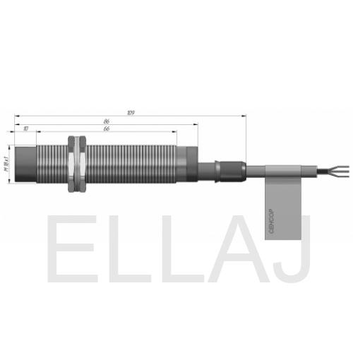 Индуктивный датчик ВБИ-М18-86С-2121-С в цилиндрическом корпусе из никелированной латуни Ø18 мм, в общепромышленном исполнении.