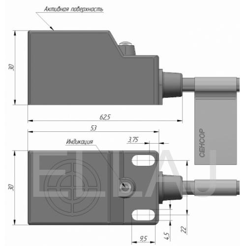 Индуктивный датчик ВБИ-П30В-53У-1113-С в прямоугольном корпусе из полиамида, в общепромышленном исполнении.