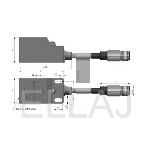 Индуктивный датчик ВБИ-П30Т-53УР-1113-С в прямоугольном корпусе из полиамида, в общепромышленном исполнении.