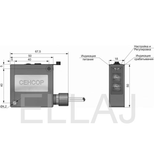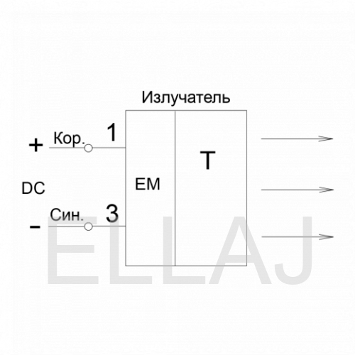 Барьерные датчики (тип-T на прерывание оптического луча) источник света и приемник находятся в отдельных корпусах и устанавливаются друг напротив друга.