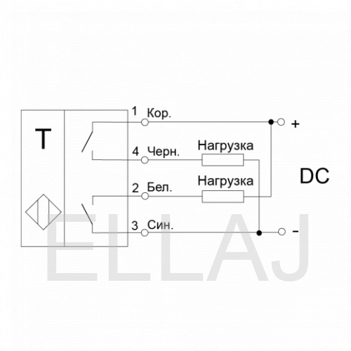 Барьерные датчики (тип-T на прерывание оптического луча) источник света и приемник находятся в отдельных корпусах и устанавливаются друг напротив друга.