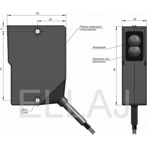 Оптический датчик ВБО-У25-80У-2111-СА в прямоугольном корпусе из полиамида, в общепромышленном исполнении