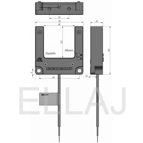 Оптический датчик ВБО-Щ50У-13-СА в щелевом корпусе из полиамида, в общепромышленном исполнении.