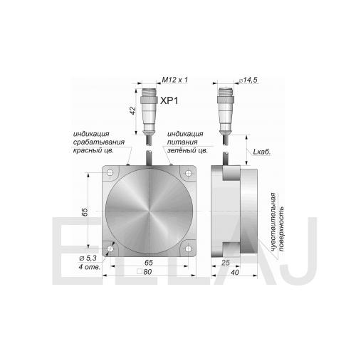 Датчик имеет чувствительную поверхность, предназначенную для контроля наличия металлических объектов. Попадание металлического обьекта в зону чувствительной поверхности вызывает изменение коммутационного состояния датчика.
