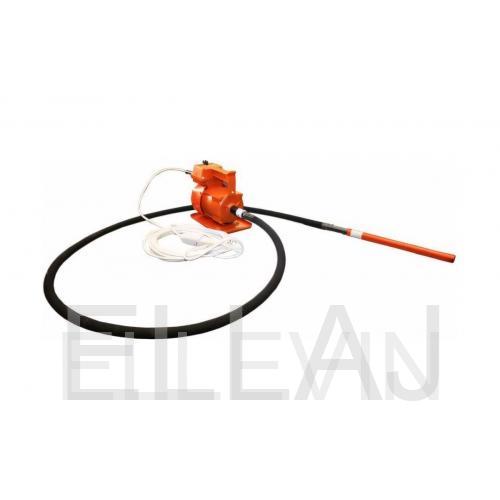 Электродвигатель приводит в движение вибронаконечник, где эксцентриковый механизм, в следствии центробежной силы, начинает вибрировать. Таким образом из бетонной смеси воздух поднимается вверх, а смесь уплотняется.