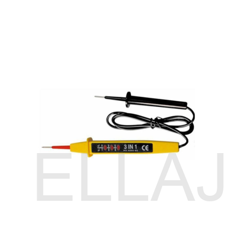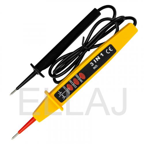 Тестер напряжения 6890-62 (3 в 1) используется для безопасной ступенчатой индикации напряжения электропитания и химических источников питания типа AA, AAA, C, D. Устройство выполнено в плоском пластмассовом корпусе с заизолированным конусным щупом. К тестеру прикреплен провод со вторым щупом. Этот тестер не определит обрыв электрической цепи. Индикаторами служат неоновые лампы.