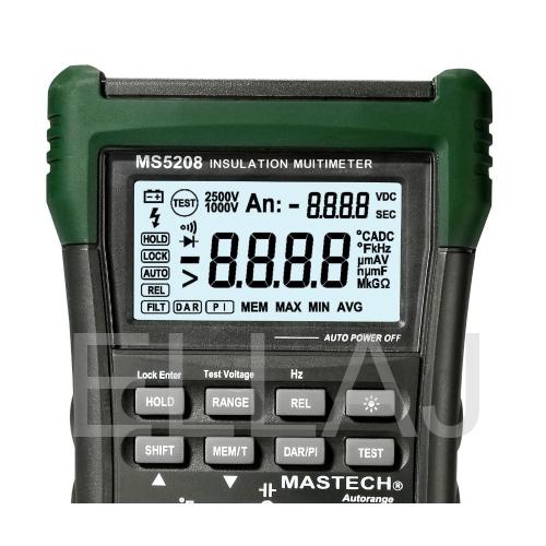 Мультиметр с основной функцией измерения сопротивления изоляции, с TRUE-RMS, наличием фильтра низких частот (LPF), памятью на 100 ячеек, измерением максимальных, минимальных и средних значений.