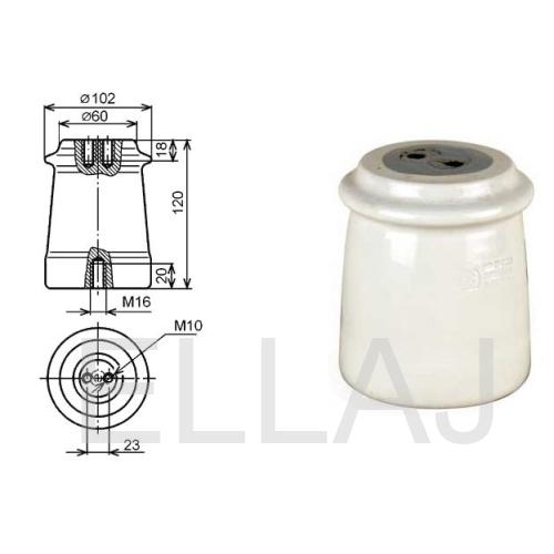 Изолятор изготовлен из электротехнической керамики, что позволило получить высокие диэлектрические свойства. Термическая обработка изолятора проводится два раза: первый раз - только фарфор, второй раз после нанесения эмали, которая служит для защиты керамики от внешних воздействий, попадания влаги и грязи.