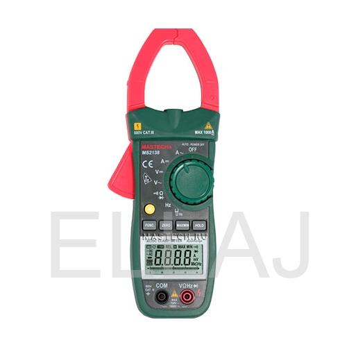Токовые клещи Mastech MS2138 выпускаются в двух модификациях: собственно MS2138 и MS2138R. Модель с индексом "R" отличается от обычной возможности измерять среднеквадратичные значения тока и напряжения. Обе модели токоизмерительных клещей позволяют измерять бесконтактным способом силу тока, а так же с помощью щупов измерять величину напряжения, сопротивления и частоту. Прибор полностью соответствует стандартам электробезопасности IEC1010-1 и IEC1010-032. В токовых клещах Mastech MS2138 предусмотрена подсветка дисплея для читаемости полученных результатов в условиях недостаточной видимости, а так же подсветка раскрыва клещей для видимости объекта измерений. С помощью кнопки "HOLD" можно зафиксировать последний полученный результат. Прибор автоматически отключится в случае длительного простоя. В токовых клещах Mastech MS2138 предусмотрена так же функции проверки диодов и прозвонка электрической цепи на качество соединения. Измерительный прибор Mastech MS2138 имеют сертификат Ростест.