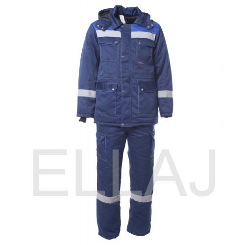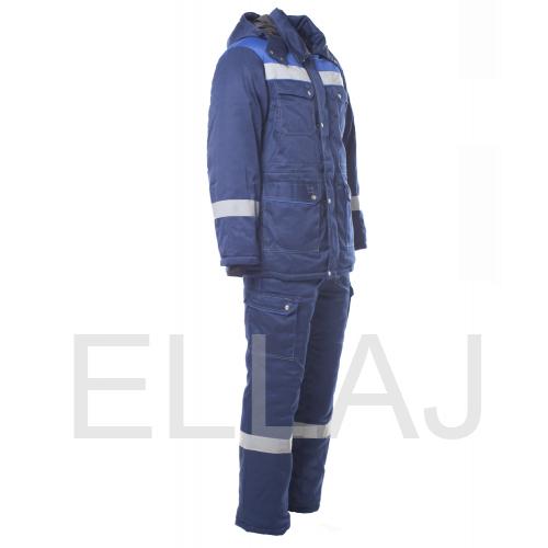 Костюм "АНТЕЙ" изготовлен в соответствии с ГОСТ и включает в себя два предмета: куртка / полукомбинезон. Он оснащен утепленной ветрозащитной планкой с застежкой на кнопки, которая обеспечивает дополнительную защиту от ветра. В костюме используется контрастная отстрочка. На модели расположены накладные карманы с клапанами, которые закрываются на кнопку. Воротник отложный, капюшон утепленный и съемный. Ширина изделия регулируется по талии куртки. Полукомбинезон с центральной застежкой на молнию. На спине вдоль линии талии есть эластичная резинка. Для безопасной работы сотрудника в местах с плохим освещением на костюме «Антей» предусмотрена световозвращающая полоса шириной 50 мм.