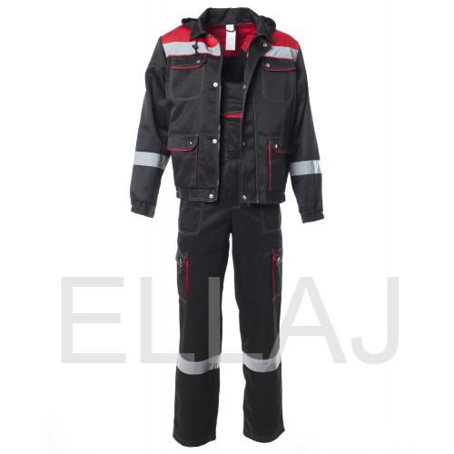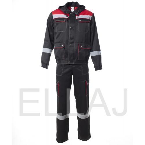 Костюм "АНТЕЙ" изготовлен в соответствии с ГОСТ и включает 2 предмета: куртка/полукомбинезон. Костюм с контрастной отстрочкой. На изделии расположены верхние накладные карманы с фигурными клапанами и перекантом на кнопках, нижние карманы с полуобъемом, с фигурными клапанами и перекантом на кнопках. Модель куртки представлена в укороченном варианте на поясе с частичной стяжкой на эластичной резинке. Куртка оснащена съемным капюшоном на пуговицах с регулировкой объема по лицевой части. На полукомбинезоне расположены многофункциональными карманы для хранения мелочей Эластичная резинка по талии спинки фиксирует посадку. Гульфик застегивается на молнию и застежку в правом боковом шве. Для безопасной работников в костюме "АНТЕЙ" предусмотрена световозвращающая полоса шириной 50 мм.