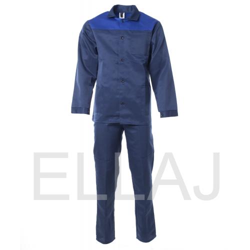 Костюм "СТАНДАРТ" изготовлен в соответствии с ГОСТ и включает 2 предмета: куртка, брюки. Модель куртки- удлиненная с застежкой на пуговицы. На изделии расположены накладной нагрудный карман с клапаном, нижние накладные карманы, на брюках накладные карманы на передних половинках. Гульфик застегивается на пуговицы. Усилительные накладки в области локтей и коленей обеспечивают дополнительную защиту.