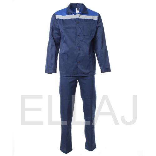 Костюм "СТАНДАРТ" с СОП изготовлен в соответствии с ГОСТ и включает 2 предмета: куртка, брюки. Модель куртки- удлиненная с застежкой на пуговицы. На изделии расположены нагрудный накладной карманом с клапаном и нижние накладные карманы. Рукава с манжетами на пуговицах по низу фиксируют посадку на руке. На брюках накладные карманы на передних половинках. Гульфик застёгивается на пуговицы. Усилительные накладки на рукавах и в области коленей обеспечивают дополнительную защиту. Для безопасной работы сотрудника в местах с плохим освещением на костюме «СТАНДАРТ» предусмотрена световозвращающая лента шириной 50 мм.