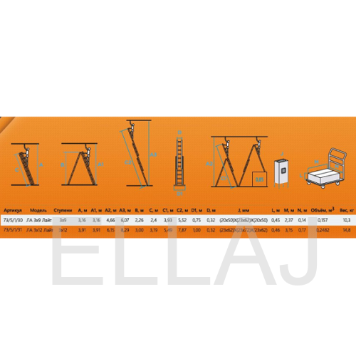 Корпус с антикоррозийным покрытием, изготовлен из алюминия. Благодаря пластиковым наконечникам ножек лестница не скользит по поверхности. Модель компактная, удобно хранить благодаря механизму трансформации. Поперечная траверса надежно фиксирует лестницу на поверхности.