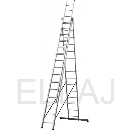 - Алюминиевая стяжка создаёт жёсткий треугольник и фиксирует рабочее положение (для лестниц 3×15–3×17).