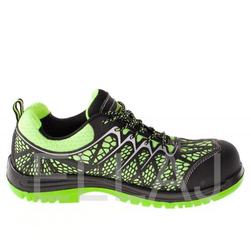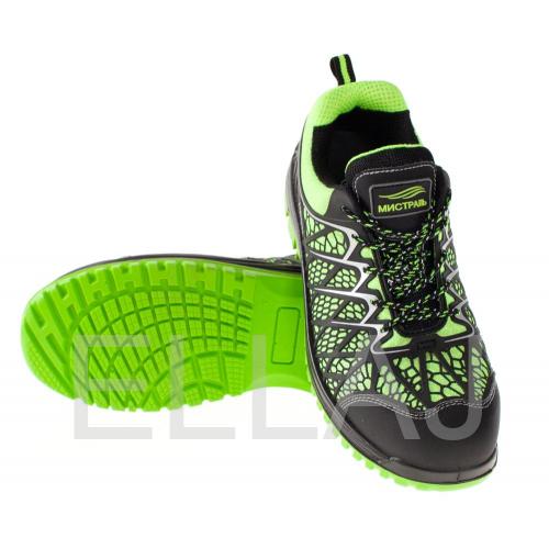 Кроссовки «МИСТРАЛЬ НЕОН» выполнены из дышащего водоотталкивающего трикотажного материала с накладками из ТПУ для дополнительной прочности и защиты. Подкладка кроссовок выполнена из текстильного воздухопроницаемого полотна с крупной ячейкой, что обеспечивает хорошую вентиляцию и комфорт. Подносок кроссовок укреплен и изготовлен из поликарбонатного материала (Мун 200 Дж) для защиты ноги. Подошва кроссовок двуслойная, выполнена из полиуретана и термополиуретана (ПУ-ТПУ) для комбинации комфорта и прочности. Стелька кроссовок антипрокольная, выдерживает нагрузку до 1200Н и обеспечивает защиту от проникновения острых предметов. Для безопасной работы сотрудника в местах с плохим освещением на кроссовках «МИСТРАЛЬ НЕОН» расположены световозвращающие элементы.