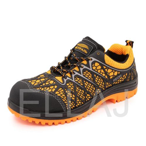 Кроссовки «МИСТРАЛЬ НЕОН» выполнены из дышащего водоотталкивающего трикотажного материала с накладками из ТПУ для дополнительной прочности и защиты. Подкладка кроссовок выполнена из текстильного воздухопроницаемого полотна с крупной ячейкой, что обеспечивает хорошую вентиляцию и комфорт. Подносок кроссовок укреплен и изготовлен из поликарбонатного материала (Мун 200 Дж) для защиты ноги. Подошва кроссовок двуслойная, выполнена из полиуретана и термополиуретана (ПУ-ТПУ) для комбинации комфорта и прочности. Стелька кроссовок антипрокольная, выдерживает нагрузку до 1200Н и обеспечивает защиту от проникновения острых предметов. Для безопасной работы сотрудника в местах с плохим освещением на кроссовках «МИСТРАЛЬ НЕОН» расположены световозвращающие элементы.