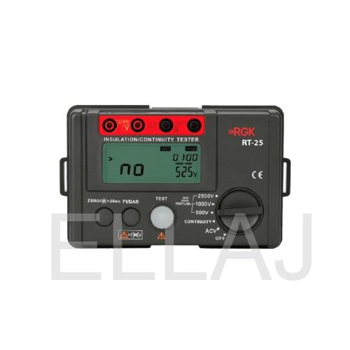 Мегаомметр RGK RT-25 776523 предназначен для оценки качества изоляции. Используется в процессе диагностики и ремонта электрооборудования, элементов энергосистем, трансформаторов, электродвигателей.