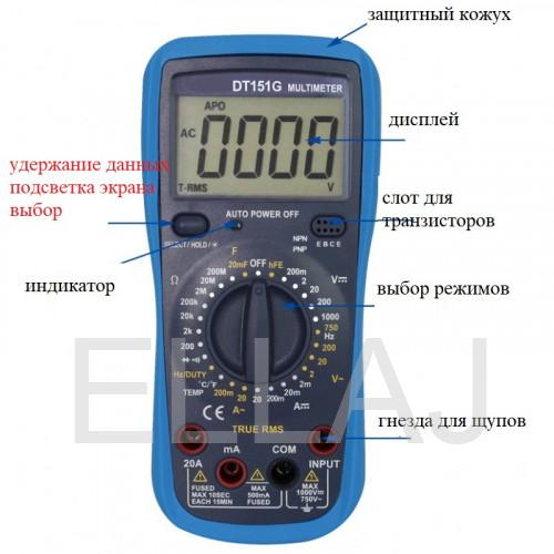 | Определение переменного напряжения | 2V-20V-200V-750V ±1.0% В |