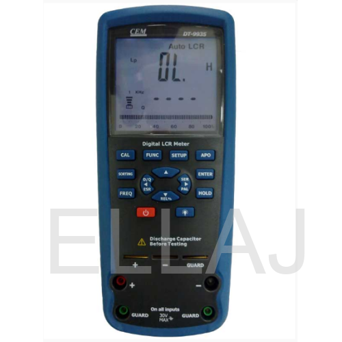 DT-9935 – профессиональный LCR-метр с автоматическим выбором режима измерения – L, C или R. Кроме того, прибор дополнительно измеряет добротность, коэффициент затухания, тангенс угла диэлектрических потерь (Q, D, θ). Высокая точность достигается 4-проводной схемой измерения.