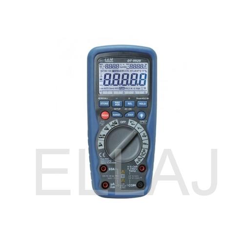 DT-9939 (9929) – профессиональные цифровые мультиметры в двойном пластиковом водонепроницаемом корпусе со степенью защиты IP67. Мультиметры измеряют среднеквадратичное значение переменного напряжения и тока – True RMS и имеют 9999 ячеек памяти для хранения результатов измерений.