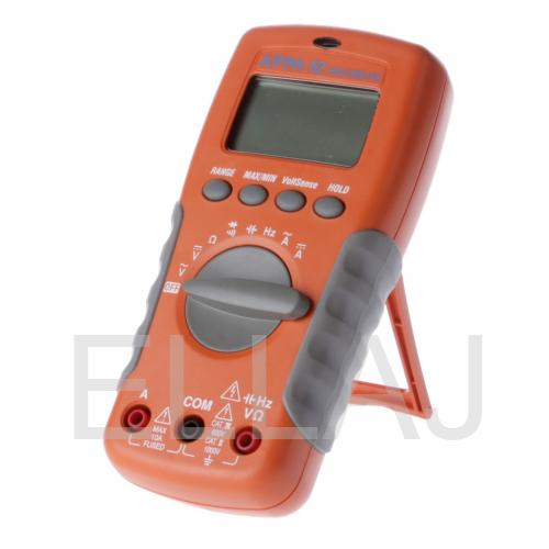 Мультиметр цифровой APPA 62 (APPA Technology Corporation): Постоянное напряжение 200 мВ - 1000 В; Переменное напряжение 2 мВ - 750 В; Постоянный ток 1 мА - 10 А; Переменный ток 1 мкА - 10 А; Сопротивление 0,1 Ом - 20 МОм; Прозвон цепи; Испытание p-n; Ёмкость 2 нФ - 2 мФ; Частота 2 кГц - 40 МГц; Удержание показаний; Регистрация min/max; Автоотключение с блокировкой; Дисплей 3 (2000); Противоударное исполнение; Бесконтактное определение наличия высокого напряжения.