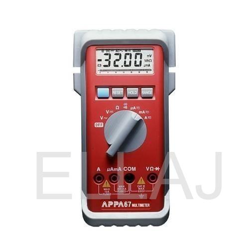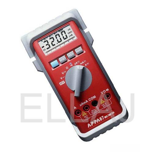 APPA 67 имеет компактный корпус, выполненный из ударопрочных и влагостойких материалов, который повышает удобство работы. Компания-производитель поставляет аппарат вместе 2-мя измерительными щупами, батареями, футляром, зажимами типа "крокодил".