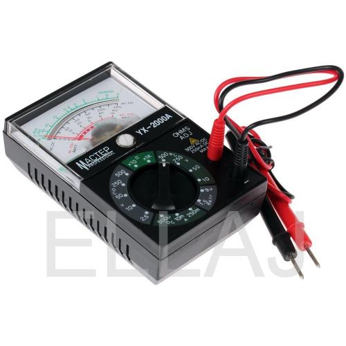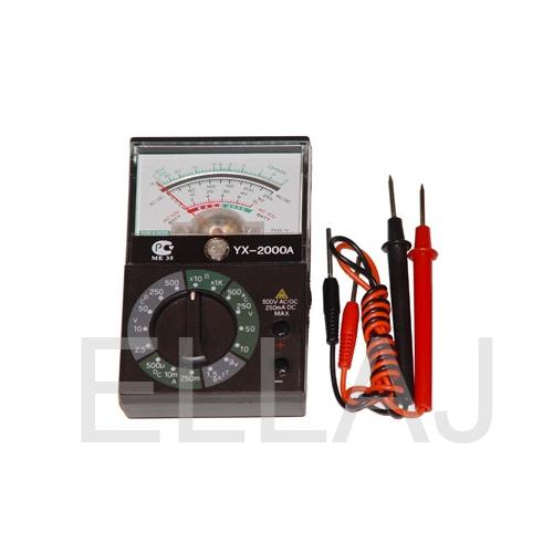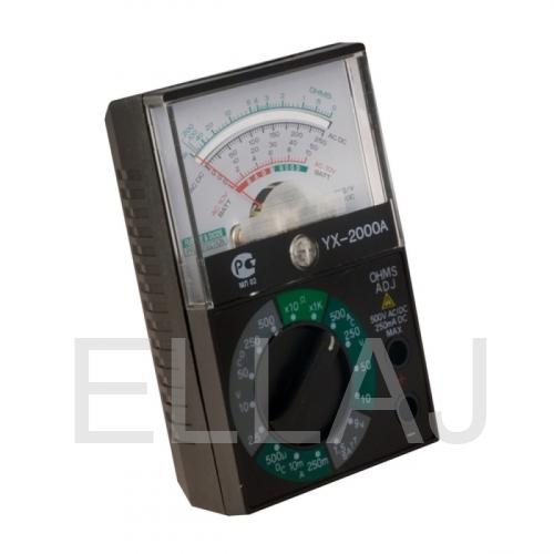 Мультиметр YX2000A – комбинированный измерительный прибор, предназначенный для измерения сопротивления, переменного напряжения до 500 Вольт, теста батарей 1.5 Вольта и 9 Вольт, постоянного тока до 250 миллиАмпер, постоянного напряжения до 500 Вольт