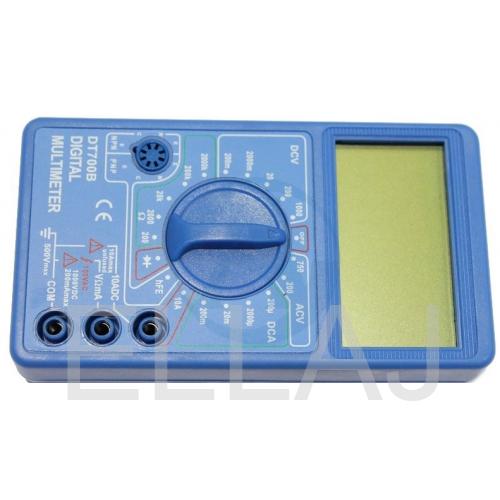 Цифровой мультиметр DT700B применяется для измерения постоянного, переменного напряжения, постоянного тока, сопротивлений, проверки диодов и транзисторов. Для комфортного использования оснащен большим дисплеем с крупными цифрами.Прибор оснащен защитой от перегрузки на всех пределах измерений и индикацией разряда батаре.