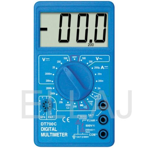 Цифровой мультиметр DT700C – один из серии карманных 3.5 -разрядных цифровых мультиметров с большим дисплеем для измерения постоянного, переменного напряжения, постоянного тока, сопротивлений, проверки диодов и транзисторов.