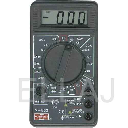 Портативный мультиметр M832 служит для измерения постоянного и переменного напряжения, постоянного тока, сопротивления, а также для проверки полупроводниковых диодов и прозвонки электрических цепей.