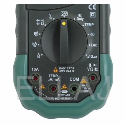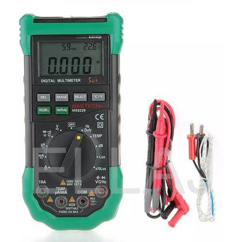 Революционный по своим возможностям цифровой мультиметр объединяет в себе сразу пять измерительных приборов с отличными характеристиками. Помимо основных функций мультиметра (измерения величин силы постоянного и переменного тока, постоянного и переменного напряжения, сопротивления), MS8229 позволяет измерять температуру, влажность, уровень звукового поля и уровень внешней освещенности. С помощью цифрового мультиметра MS8229 можно тестировать полупроводниковые диоды и прозванивать электрические цепи.
