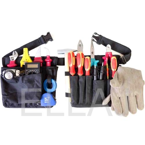 Набор электрика до 1000В сумка-пояс предназначен для производства электромонтажных работ в сети и установках, работающих под напряжением до 1000В. Сумка-пояс облегчает работу на высоте, в тесных помещениях, где отсутствует возможность разложить инструмент.