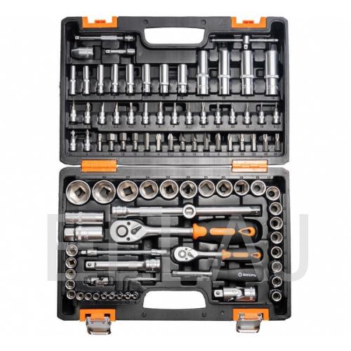 Набор инструмента ВИХРЬ предназначен для ремонта автомобилей, мотоциклов, садовой и другой техники. Подходит как для использования на станциях технического обслуживания, так и в бытовом применении дома или на даче. Инструмент изготовлен в соответствии с международными стандартами. Головки и комбинированные ключи изготовлены из хромованадиевой стали, придающей инструменту высокую твердость и легкость. Биты, биты-вставки и отвёртки производятся из стали S5, улучшающей характеристики крутящего момента и твёрдости. Все наборы упакованы в ударопрочный кейс, изготовленный из жесткого противоударного пластика, с металлическими застёжками. Повышенные показатели прочности, крутящего момента и износостойкости.
