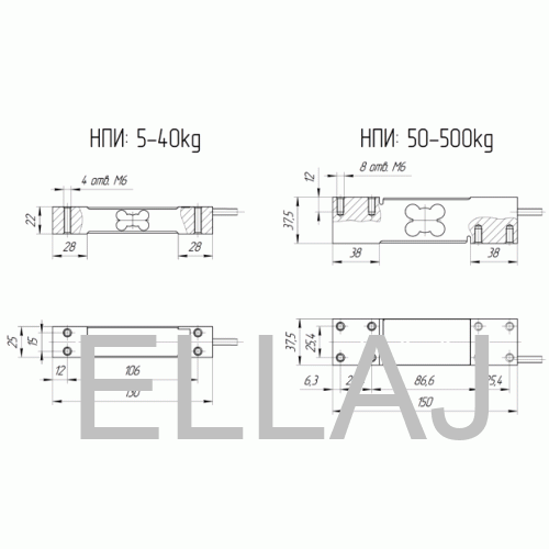 | Наибольший предел измерения, кг | 5, 6, 8, 10, 15, 20, 30, 35, 40, 50, 60, 100, 150, 200, 250, 300, 500 | Рабочий диапазон температур, °С | -20..+50 |