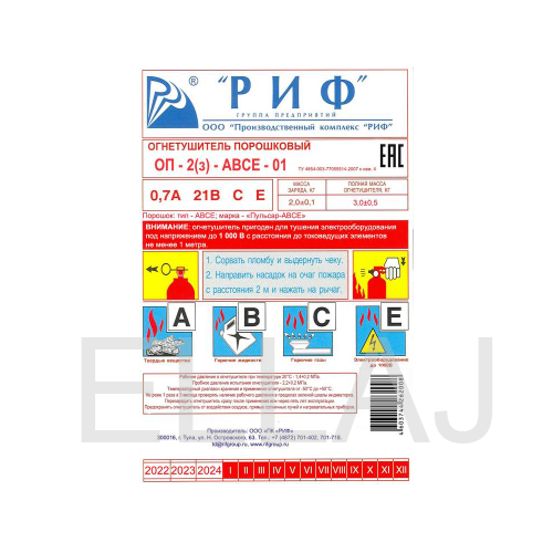 руководство по эксплуатации, объединенное с паспортом на огнетушитель- 1 шт