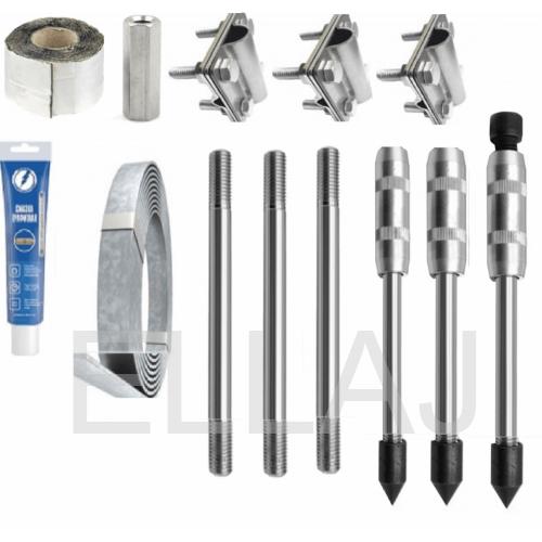 Заземляющие устройства изготовлены из оцинкованной стали марки ст.35 (или ст.20) с покрытием цинком по ГОСТ 9.301-86 / ГОСТ 9.307-2021. Минимальное рекомендуемое расстояние от фундамента - не менее 1 метра.