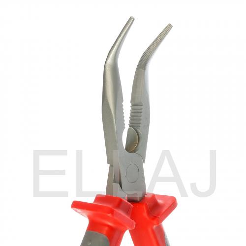 Длинногубцы изогнутые КВТ имеют две зоны захвата с зубцами и режущую часть.
