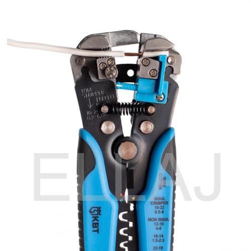 Стриппер автоматический КВТ - многозадачный ручной инструмент, используемый при проведении электромонтажных работ: удалении изоляции с проводов, их резки и опрессовки наконечников различных видов (в том числе изолированных).