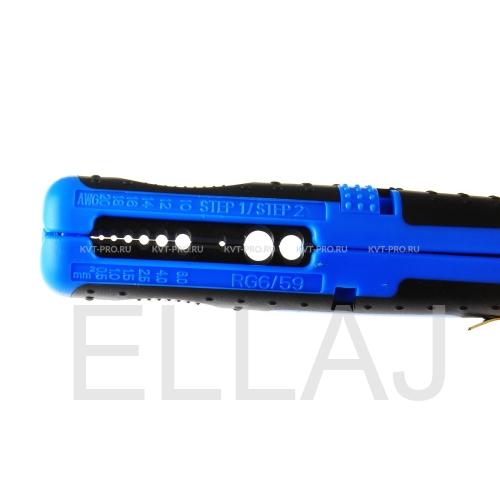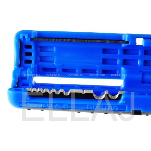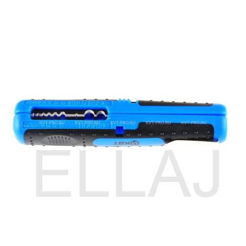 – карманный электромонтажный инструмент КВТ, предназначенный для удаления изоляции с проводов, а также круглых (ПВС, ПВ/АПВ, NYM, МКЭШ) и коаксиальных (RG-6, SAT) кабелей.