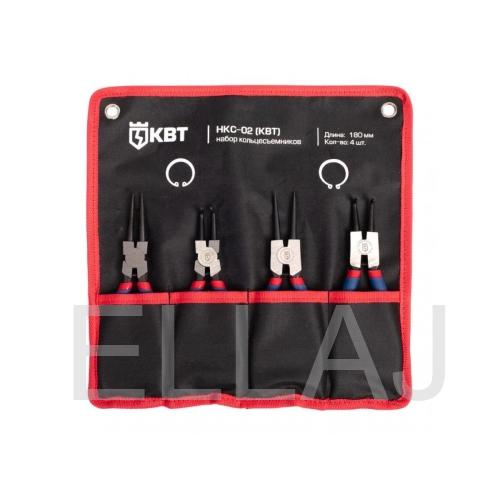 В состав набора НКС-02 (77443) входит инструмент для снятия как внутренних, так и наружных колец различного типа. Каждый съемник размещается в отдельном отсеке матерчатой сумки, которая имеет липучку для крепления и специальные отверстия для размещения на евростендах. Набор представлен самыми большими кольцесъемниками от КВТ серии МАСТЕР, для остальных колец предназначены съемники длиной 140 мм и набор НКС-01.