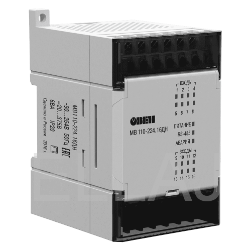 Прибор предназначен для сбора данных со встроенных дискретных входов с передачей их в сеть RS-485. Встроенные дискретные входы могут работать в режиме счетчиков импульсов частотой до 1 кГц МВ110 работает в сети RS-485 по протоколам ОВЕН, ModBus-RTU, ModBus-ASCII, DCON. МВ110 не является Мастером сети, поэтому сеть RS-485 должна иметь Мастер сети, например, ПК с запущенной на нем SCADA-системой, контроллер или регулятор. К МВ110 предоставляется бесплатный ОРС-драйвер и библиотека стандарта WIN DLL, которые рекомендуется использовать при подключении прибора к SCADA-системам и контроллерам других производителей. Конфигурирование МВ110 осуществляется на ПК через адаптер интерфейса RS-485/RS-232 или RS-485/USB (например ОВЕН АСЗ-М или АС4) с помощью программы «Конфигуратор М110», входящей в комплект поставки. Прибор отвечает требованиям по устойчивости к воздействию помех в соответствии с ГОСТ Р 51522 для оборудования класса А.