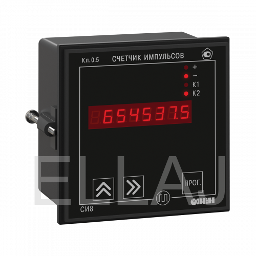 Микропроцессорный счетчик импульсов СИ8. Используется для подсчета количества продукции на транспортере, длины наматываемого кабеля или экструзионной пленки, сортировки продукции, отсчета партий продукции, суммарного количества изделий и т.п. Встроенный в СИ8 таймер позволяет использовать прибор в качестве счетчика наработки, расходомера или для определения скорости вращения вала.
