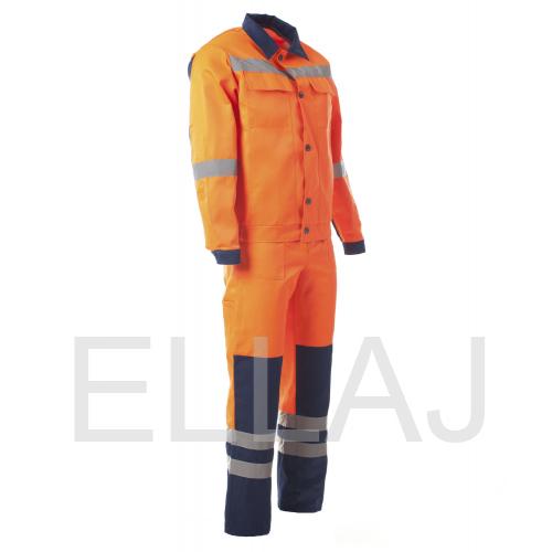 Костюм «МАГИСТРАЛЬ» с СОП изготовлен в соответствии с ГОСТ. На изделии расположены верхние карманы с клапанами и нижние карманы с вертикальным входом. Модель куртки выполнена в укороченном варианте на поясе с частичной стяжкой на эластичную резинку. В полукомбинезоне размещены многофункциональные карманы для хранения мелочей. Застежка гульфика и в правом боковом шве на пуговицы. По талии спинки расположена эластичная резинка для фиксации посадки. Бретели на пластиковых застежках (фастексах). Для безопасной работы сотрудника в местах с плохим освещением на костюме «МАГИСТРАЛЬ» с СОП предусмотрена световозвращающая полоса шириной 50 мм.
